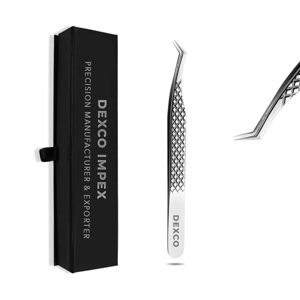 Dexco Impex Precision Eyelash Tweezers — Professional-grade tweezers engineered for accurate isolation and secure lash placement. Available in multiple finishes and tip/length options to suit every technician’s technique and salon aesthetic, each piece is manufactured from high-grade stainless steel and quality-controlled for export.