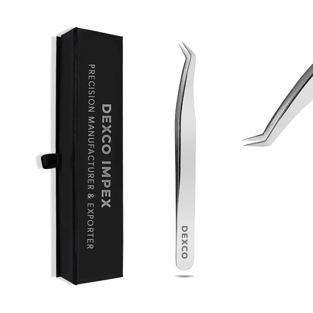 Dexco Impex Precision Eyelash Tweezers — Professional-grade tweezers engineered for accurate isolation and secure lash placement. Available in multiple finishes and tip/length options to suit every technician’s technique and salon aesthetic, each piece is manufactured from high-grade stainless steel and quality-controlled for export.